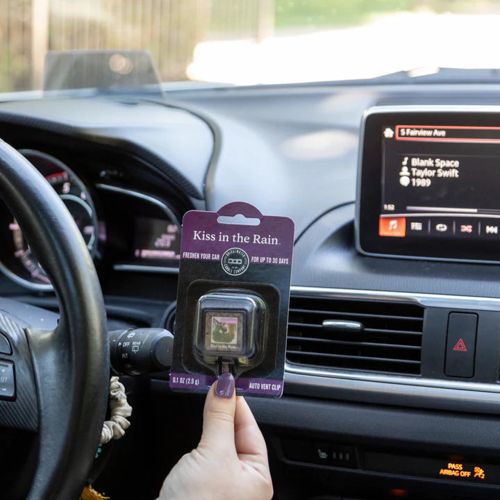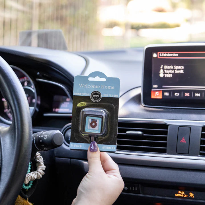 - Connect your Auto Vent Clip to the air vent in your vehicle by sliding the clip onto one of the slats