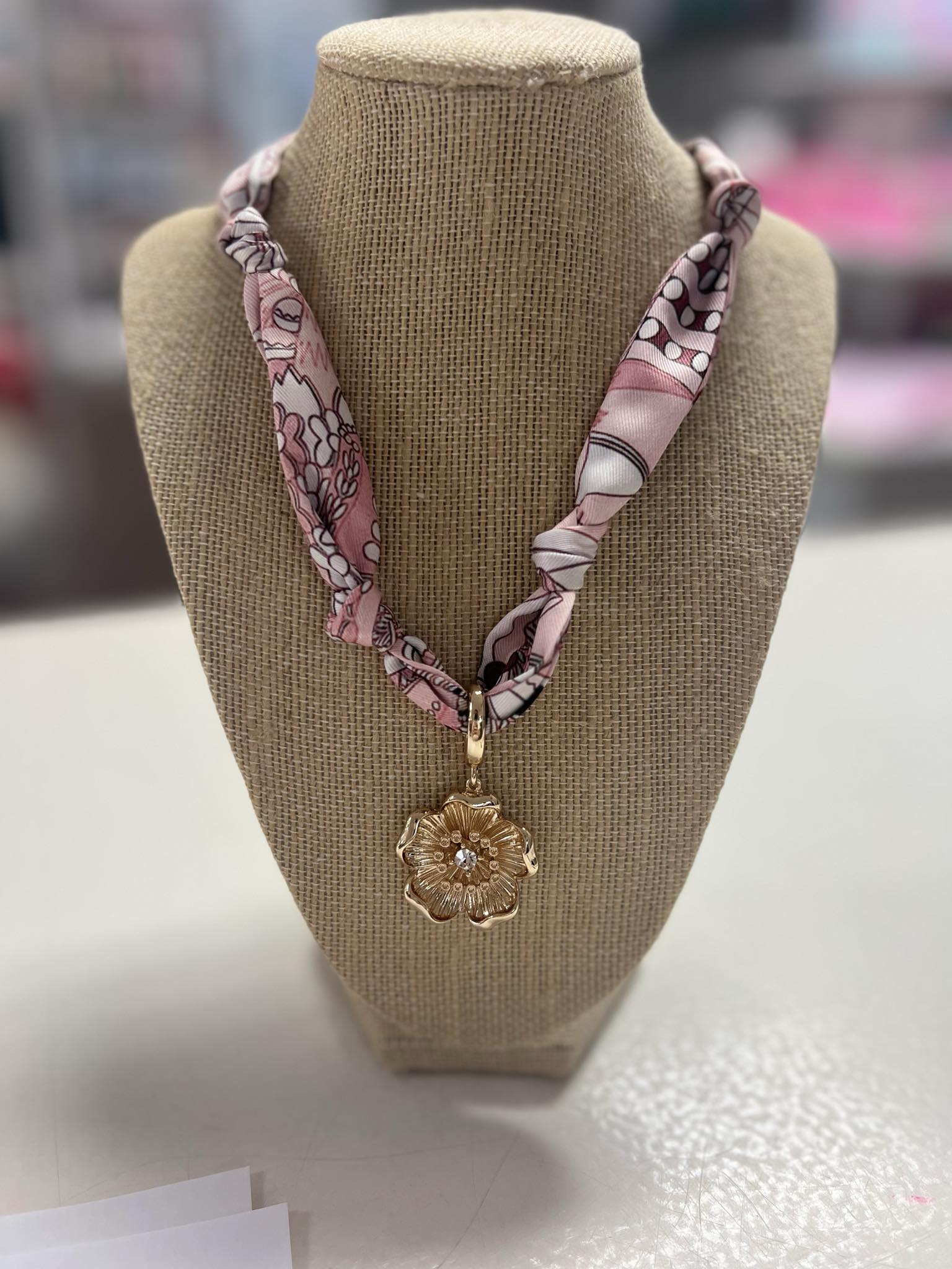 Soft, sweet, and effortlessly feminine, this floral-inspired scarf necklace adds a delicate bloom to any look.