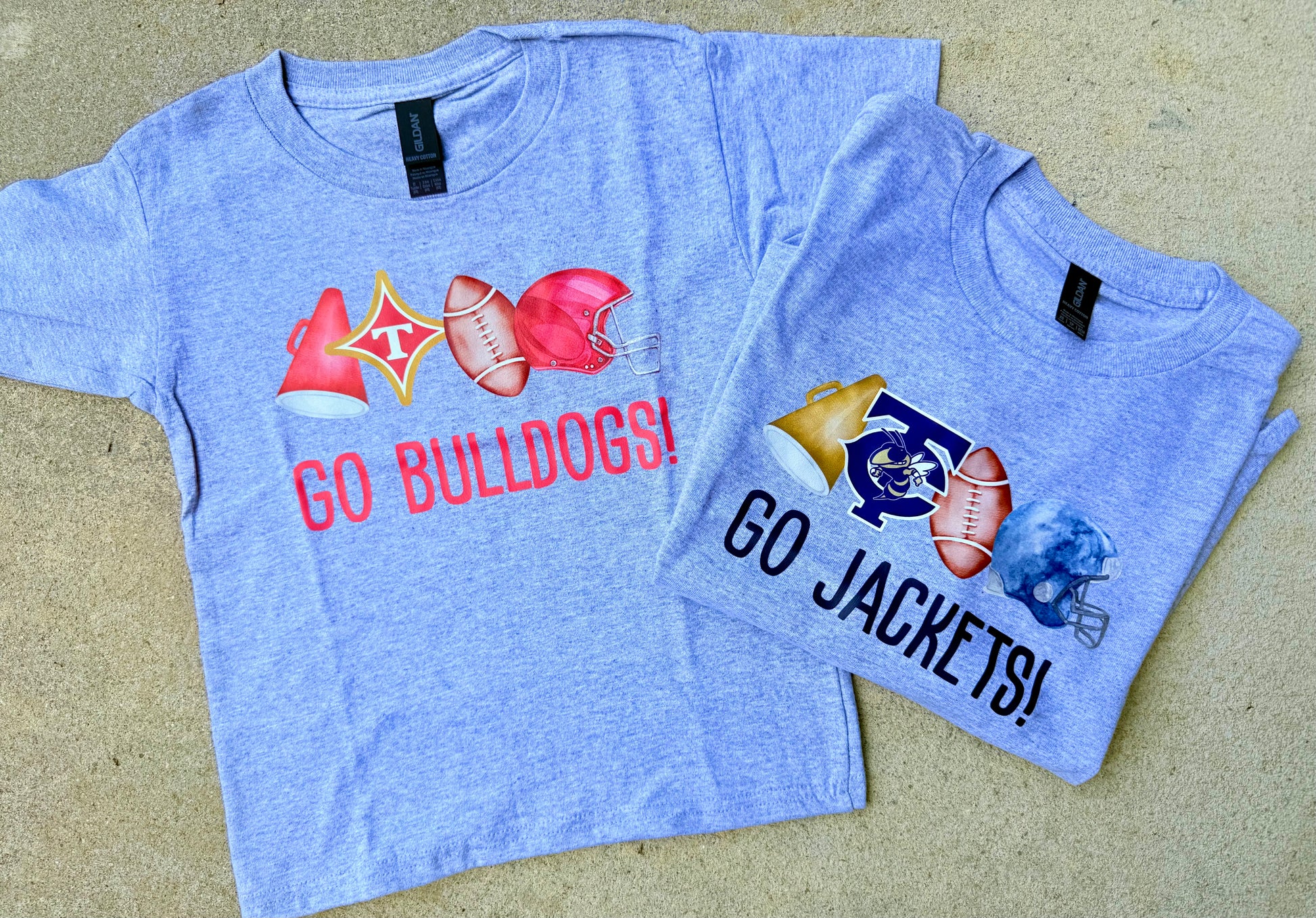 Custom made on a heather gray tee.