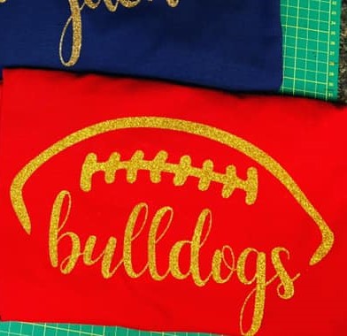 Heat Pressed in Glitter Vinyl on a standard Gildan or Port and Co t-shirt.