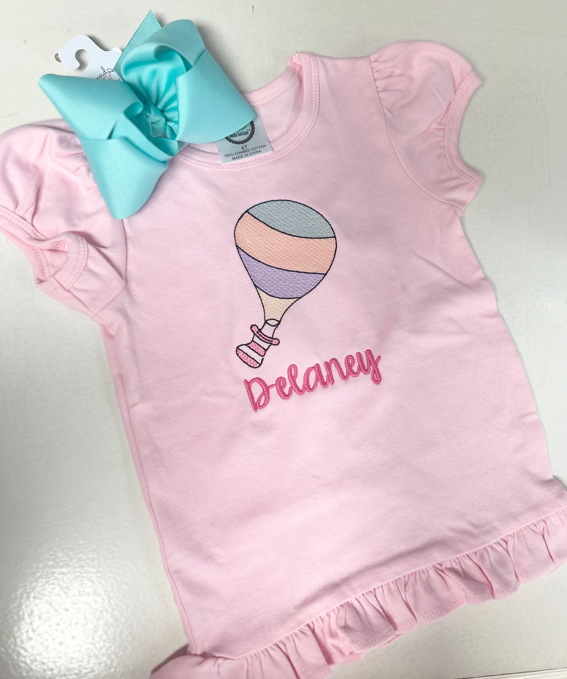 Pastel Themed Hot Air Balloon Shirt on Light Pink Ruffles.