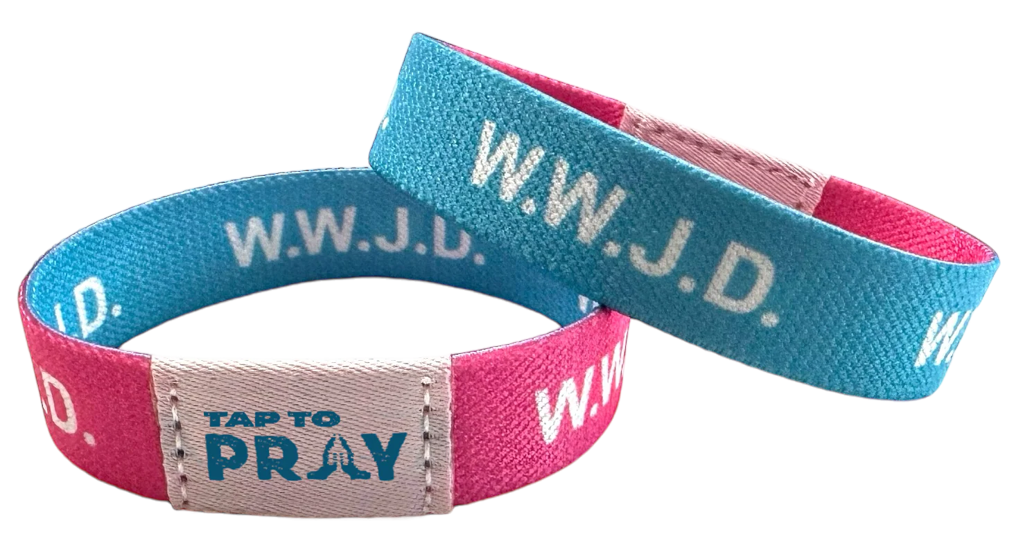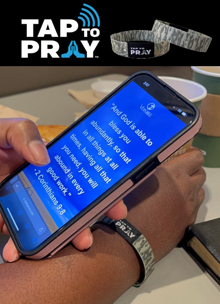 We are so excited to introduce our new product - Tap To Pray bracelets. No app required, just tap the patch with your smartphone to receive a new Bible verse and prayer every day. They work with most smartphones and are reversible and waterproof!
