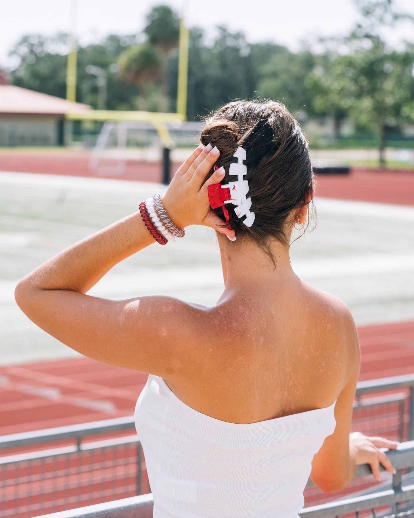 Say goodbye to breakable clips! We have perfected the hair tie and now have re-invented the clip. Each clip has bendable teeth that take back to shape, they work on all hair types and have a strong hold. Hold your hair and enhance your style with the new University Clips!